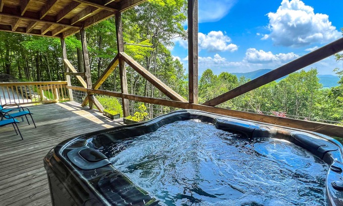 Best-rates for the West Jefferson cabin starts from $417 per night with includes Laundry, TV, Entertainment, Child Friendly, Sports/Activities, Internet, Air Conditioner, Security/Safety, Bedding/Linens, Fireplace/Heating, Barbecue/Outdoor Cooking, Kitchen, Parking, Balcony/Terrace, Wellness Facilities, Hot Tub StayAndPlay offers fully equipped golf villas, golf hotels, golf resorts, luxury golf cabins, and exclusive golf retreats, making it easier than ever to find your perfect golf escape — ideal for families, peaceful getaways, or pet-friendly retreats with the whole crew.