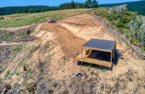 Upon arriving at the campsite, you'll be greeted by 6 hectares of cutover land, featuring 4-wheel drive tracks for adventurous souls to explore and play on. Our open-air gazebo provides a communal space equipped with running water and a gas hob. Please bring your own gas bottles for cooking. Additionally, a rustic bathroom awaits, complete with an LPG gas califont unit for warm water and a bath—remember to bring your gas bottle to power these amenities. For convenience, there's also a long drop toilet.