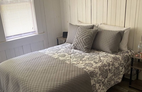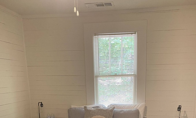 This newly renovated 1940's farmhouse (back apartment) is located 3 miles from Downtown Dahlonega and its multitude of wineries! Thoughtful and charming décor and comfy furniture for a welcoming stay. 1 queen BR, 1 full BR, and 1 full bath adjoining a cozy living room. 3 mile drive to UNG, shopping, historic Dahlonega, hiking, wineries and more! Monthly/weekly discounts available. Book now! STR-21-0035
