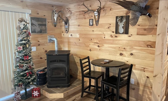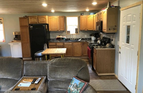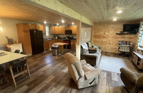 The cabin is nicely equipped with all of the conveniences you would expect at home. From a fully stocked kitchen to sheets on the bed and fresh towels in the bathroom. Even a washer and dryer is there for your use! Also included is a 36" blackstone griddle and a pellet grill/smoker for those tasty homemade meals. You enter the cabin into a mudroom that is perfect for storing your extra gear and overstock. The mudroom stores the grill and smoker as well as an extra fridge. It is heated separately by an electric baseboard heater giving you a great place to dry your outdoor gear. The yard is very spacious with outside lighting for after hours games. The firepit can be moved around and all firewood is included, but please be respectful on the amount you use. The cabin is constantly undergoing updates and improvements as it is our personal family getaway.