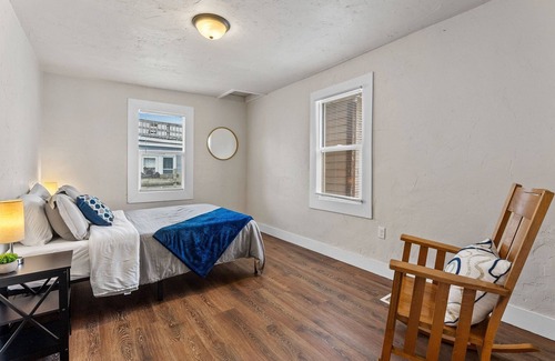 This is a lower unit in an upper/lower duplex. The unit features three bedrooms each with a queen bed, a living room, a dine in kitchen and a full bath. The apartment has shared laundry in the basement. The driveway is shared with the upper unit, but it is 2 cars wide providing off-street parking for one vehicle and street parking is available seasonally for a second vehicle.