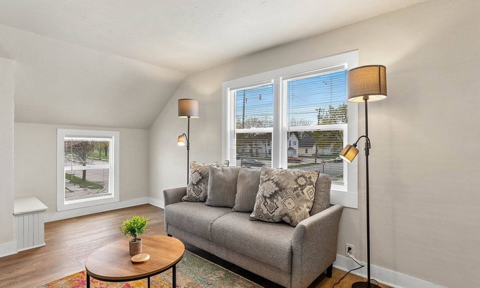 This lively 1 bedroom apartment with a spacious layout is on the upper level of a duplex only 1 mile from the Maritime Museum and 1.5 miles from Rahr West Art Museum in Manitowoc, making it the perfect place for families or friends visiting the area on vacation.