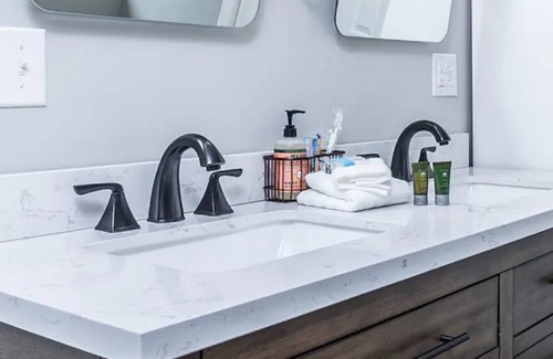 Besides the ensuite bathroom in the master bedroom, an additional full bath caters to the other three bedrooms. The half bath is nestled next to the living area for added convenience. All are stocked with fresh towels and essential toiletries, so you don't have to worry about bringing your own.