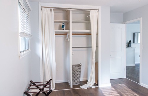 Additionally, guests are welcome to pass through the garage and enjoy the private backyard space featuring a BBQ grill, a firepit with lawn chairs, and a grass area for fun and games!
