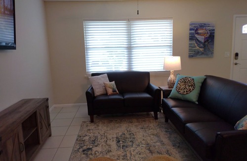 Beautiful spacious Lake House, right on Lake with dock in back. Relaxing screened in views of water. Laundry room, plenty of space to park your boat. Foosball table, and beautiful coastal interior design. Big shade trees in back yard with a picnic table. You can fish right off the dock and watch the wildlife, birds, manatee, and turtles.
