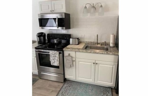 Light filled, beautifully updated studio apartment in small apartment building 5 minutes from downtown Augusta. Full-sized stove/oven and refrigerator and fully stocked kitchen with pots, pans, microwave, coffee maker, dishes, silverware and cooking utensils. Beautiful queen-sized bed with luxury mattress and sheets. Good closet space. Coin-op washer/dryer in basement for laundry. Perfect for traveling healthcare professionals. Very convenient to the local medical practices and the best of Augusta or a great stopping point on your way up to Acadia/Bar Harbor.