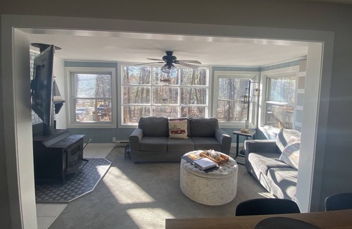 Totally renovated cottage in the woods across street from Lake Wallenpaupack. Two bedrooms with 3 queen size beds plus a full size bathroom with tub/shower. If you are looking for a peaceful escape into the mountains at a reasonable price, this is a great property. It is warm, cozy and simple, a wonderful escape from the hustle and bustle of the city or suburbia. The rental is for the entire cabin. There is no lake access, seasonal views of the lake. Walt's Landing Marina is across the street. It is located on the Hawley side of the lake with plenty to do in the area. Free lake access 1.5 miles away.