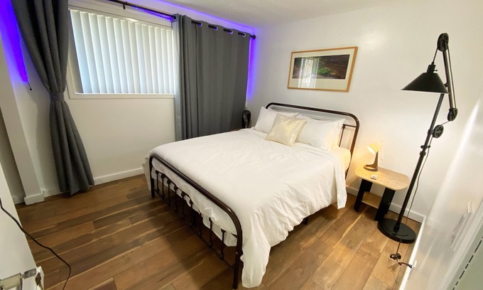 The unit includes self-check-in, a well-equipped kitchen, in-unit laundry (detergent and softener sheets included), free covered parking behind the unit, or free street parking in front.