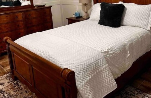 Our is a spacious 1,800 square foot basement with a private entrance. You will have complete privacy with a large living area and two separate bedrooms. The suite features a pool table, life size board games, an Xbox 360, movies & board games. We have a microwave that can also be used as an air fryer, along with a hot plate that can be used with the included pots and pans. There are complimentary toiletries for your use in the bathroom.