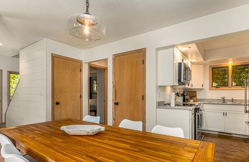 The interior is air conditioned throughout, offering a well-equipped kitchen with stainless steel appliances, an indoor dining space for when the weather turns crisp, and high-speed WiFi in case you're hoping to work from home. A private washer/dryer is on hand as well.