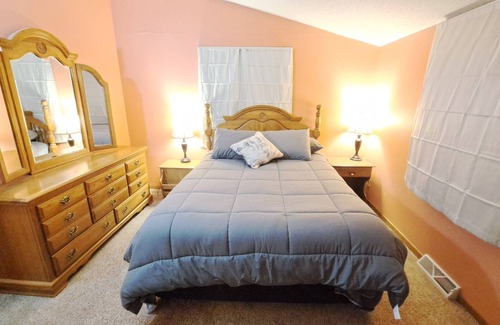 This home away from home offers a queen bed suite, full bed suite, twin bed in the lower level and bunk bed bedroom also in the lower level. There are two living areas for everyone to spread out and a futon and full size couch in the main living area provide plenty of space for everyone! The large rear deck provides space to relax or entertain. The yard is fenced in on three sides so you are able to relax and enjoy the large backyard.