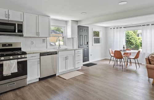 2 beds, 1 bath home away from home. You can enjoy a large yard, firepit, cornhole, kayaks, grill, coffee bar, and swimming all from your backyard. The home includes everything new! Includes: heat, A/C, full laundry, high speed WIFI, keyless entry, smart tv and beautiful views! Also includes cornhole, board games, and lifejackets! In addition to all the fun you can have at the Mandon Retreat, there are many local parks with things to do in the area!