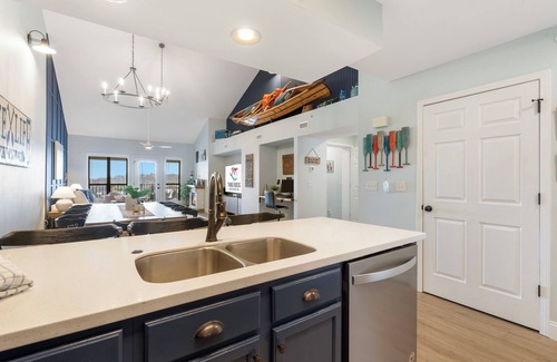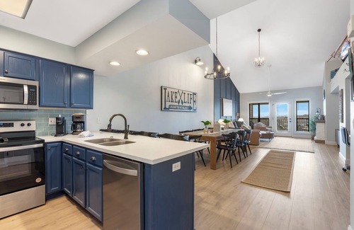 Welcome to your lakeside getaway! 🏞️✨ This beautifully remodeled, lake-themed condo is bursting with natural light, offering 2 spacious bedrooms, 2 elegant bathrooms, and room for up to 8 guests! Relax in 2 king beds and 2 sleeper sofas, with the convenience of an in-unit washer & dryer.