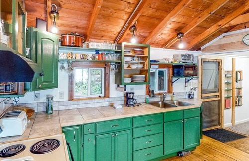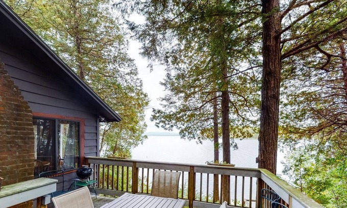 The serene beauty of Lake Champlain awaits at this waterfront cottage in the woods! You'll find a fun, cozy mix of updated rustic chic features, like knotty pine, reclaimed wood, and LED lighting, and a cute vintage vibe in this cabin affectionately known as "Hodge Podge Lodge" to its owners. Find peace and relaxation, escape the pressures of the outside world, relax on the deck, and access the lake using the private dock steps away. This compact home has everything to help you unwind and enjoy quality time with family or friends: The beauty of Lake Champlain and its spectacular scenery, many games and puzzles, a book nook with a day bed and an eclectic library collection, wood-burning stove, a BBQ on the deck, local and state-wide guidebooks/brochures, and super-fast high-speed internet. This cabin has a surprisingly large, well-equipped kitchen for all your cooking and baking needs. The soothing sound of waves lapping at the shore is just outside your windows for a dreamy night's sleep. A contemporary sofa bed with a highly-rated memory foam mattress will ensure your comfort and superb sleep if an extra bed is needed. This cabin is a perfect choice for those searching for spectacular sunset views over the Adirondacks, with easy access to Burlington culture and rural driving or bike trips. The Point Bay Marina on Thompson's Point is just minutes away for motor-boating enthusiasts.