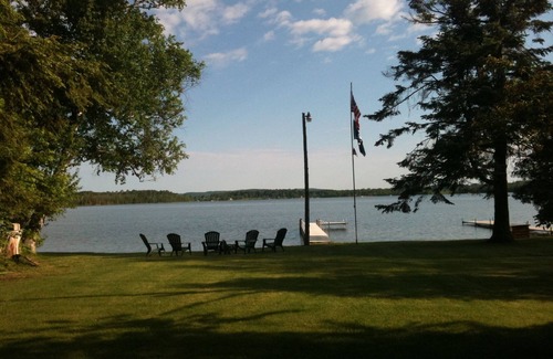 Two story lakefront log cabin (1800+ square feet) with all the modern amenities. Cabin sits on a large grassy lot that goes up to the water, with hard packed sand bottom perfect for swimming, wading, boating, fishing. Fire pit at the lakefront. Boat rentals available from local marinas or bring your own boat and launch from nearby public launch. Boat right up to owners dock and moor your boat there. Excellent fishing (bass, walleye, pike). Pickerel Lake is by far the most quiet of the Inland Waterway. Great waterskiing, wake boarding, and all boating activities. Incredible sunsets.
