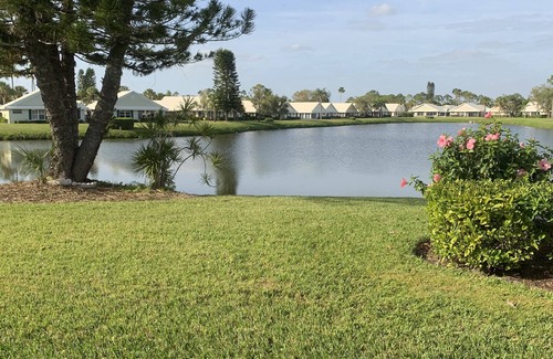 Updated villa with breathtaking views of the lake. Tranquil and peaceful setting to relax and rest. Full updated kitchen 2019, with stainless appliances and quartz countertops. Full dining room and comfy great room. Additional space includes the Florida room with room for your computer on a desk. Enclosed lanai with settings for 8 and 2 chaise lounges to relax and read or watch the wildlife in the lake.