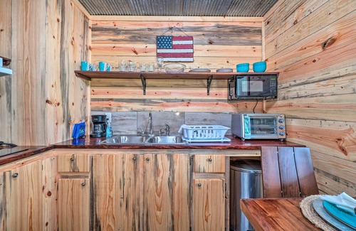 Slow down and indulge in small-town living at this secluded Ozark getaway. With hiking trails, waterfalls, and recreation areas within easy reach, this 1-bathroom studio vacation rental is perfect for outdoor enthusiasts to unplug and commune with nature. This recently renovated cabin features a cozy interior with a flat-screen TV, an outdoor fireplace, and a covered porch to sit back and enjoy the view! Plus, your dog will love running around the sprawling yard as you unwind by the fire pit.