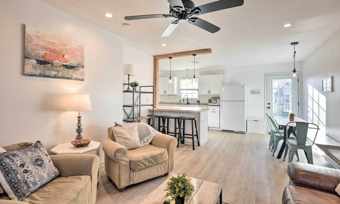 Highlighted by its modern interior, spacious shared backyard, and proximity to outdoor fun, this homey vacation rental is perfect for your next South Carolina getaway! This 2-bedroom, 1-bathroom abode features free WiFi and a full kitchen, plus a shared fire pit below the deck. Hit the links at Pebble Creek Golf Course, explore scenic hiking trails in a nearby park, or take a stroll through Taylors Mill! Later, you can fire up the grill for dinner and unwind with all the comforts of home.