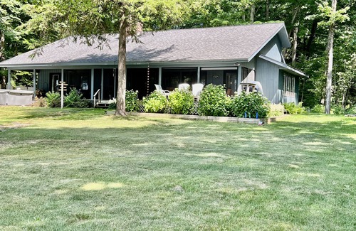 Relax with the whole family on beautiful turquoise Torch Lake. Use one of the kayaks to see the loons, swim from your own private beach, roast marshmallows on the beach, have cocktails while watching spectacular sunsets, fish from your own “drop off” (100’ out from our beach) or play board games late into the night in the screened in porch. There are beautiful perennial gardens all around the property.