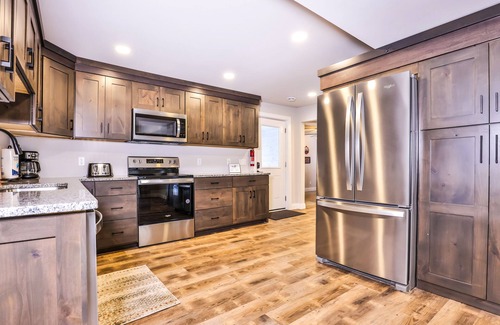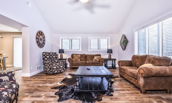 The interior is remarkably open and spacious, with every comfort - central air, high-speed WiFi, and a washer/dryer - on hand for your use. Prepare homemade meals in an updated kitchen with stainless steel appliances, gather around the dining room table for dinner each evening, and retreat to the living room afterwards to stream movies, play card games, and curl up by the gas fireplace. Of the bedrooms, one is a primary suite with its own smart TV.
