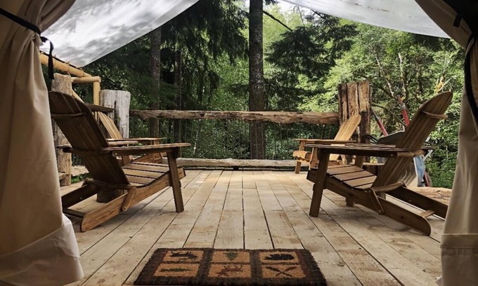 Well behaved pets are allowed in canvas glamping tents for additional fee.