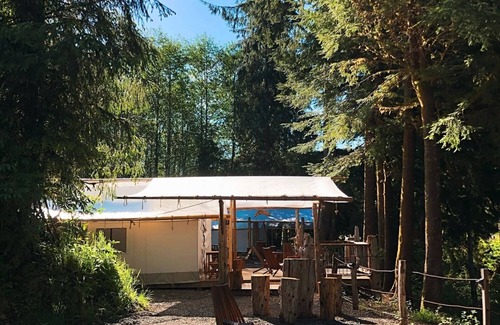 Well behaved pets are allowed in canvas glamping tents for additional fee.
