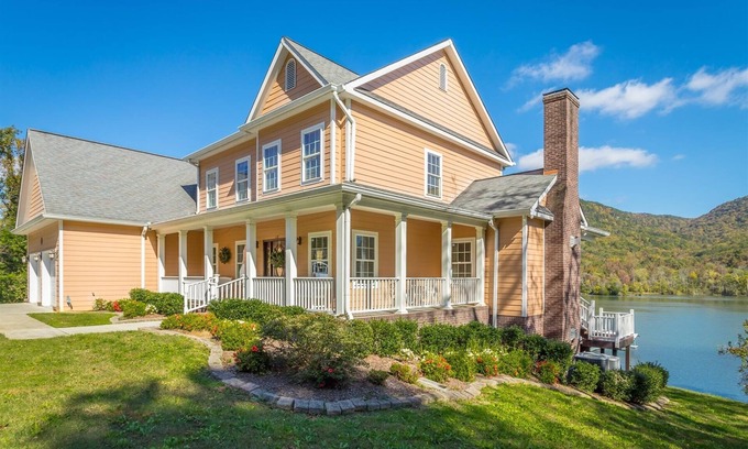 This home sitting on the Tennessee River is a dream! Located 15 minutes from downtown Chattanooga, our Upper & Lower Cove home offers a tranquil and idyllic getaway with the novelty and comfort of staying in a large home that can fit the whole family. Our property has 2 kayaks, a canoe and a fire pit that you can use during your stay on the Tennessee River! Take advantage of the dock on the property and enjoy the expansive 180 degree views of the Tennessee River and the mountains beyond!