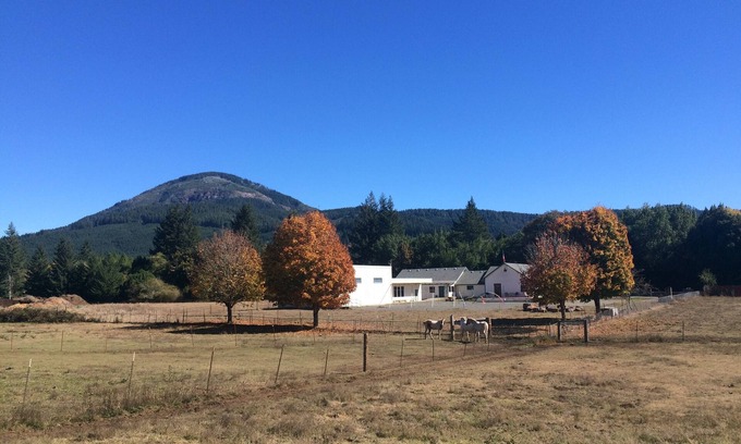Converted from school rooms, this rental is unique and unconventional. Some of the perks include a playground and gym at your doorstep, an outdoor shower, a game room with pool, ping pong, air hockey, and foosball table, a large stone fire pit, an outdoor basketball court, a library with hundreds of interesting reads, and spacious rooms. Surrounded by horse pastures we have a large parking area and are fully wheelchair accessible. Enjoy the Upper Chetco ideally located at the gateway to the Upper Chetco River and the Kalmiopis Wilderness area.