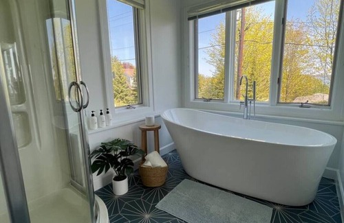 Steeple Hill Flats offers two modern hotel-style suites nestled into the Bayfield hillside overlooking downtown and the breathtaking Lake Superior, Apostle Islands, and the Madeline Island Ferry. The Upper Flat, located up a single flight of stairs on the second level, offers gorgeous views with a private balcony. Abundant in windows and natural light, this airy suite offer guests a chance to relax and rewind. Steeple Hill Flats is located in a quiet residential area, a short walk from the Madeline Island Ferry Line and everything downtown Bayfield has to offer.