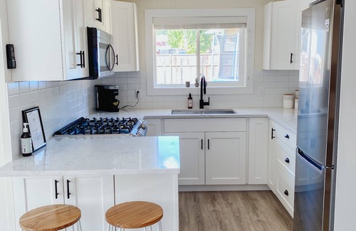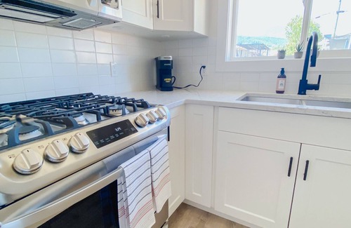 Channel your inner chef in the well-equipped kitchen, complete with a gas range and microwave. Whip up delicious meals and culinary creations while enjoying views of the backyard. Please note, there's no dishwasher, but with everything else at your fingertips, you'll hardly notice!
