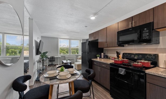 Stay in style in the eclectic city, home to the largest Oktoberfest in the USA—Cincinnati. This classy 485-square-foot (~45-square-meters) studio apartment features 2 Full Beds for your comfort, Lightning Fast Wifi, a Separate Workstation, a Fully Equipped Kitchen, and other Luxury Amenities—specially designed for your longer length stays! Step out to a lively neighborhood, just 5-7 minutes to Downtown—surrounded by the restaurants, cafés, bars, and shops this exciting city has to offer!