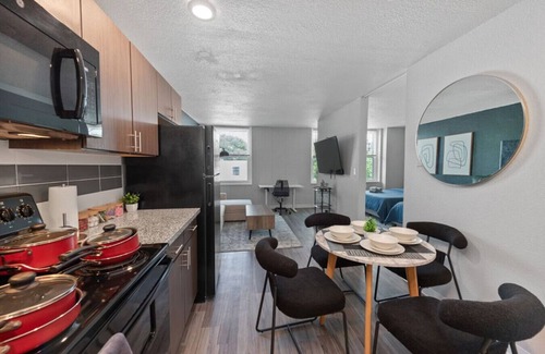 Stay in style in the eclectic city, home to the largest Oktoberfest in the USA—Cincinnati. This classy 485-square-foot (~45-square-meters) studio apartment features 2 Full Beds for your comfort, Lightning Fast Wifi, a Separate Workstation, a Fully Equipped Kitchen, and other Luxury Amenities—specially designed for your longer length stays! Step out to a lively neighborhood, just 5-7 minutes to Downtown—surrounded by the restaurants, cafés, bars, and shops this exciting city has to offer!