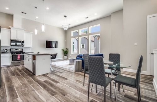 BRAND NEW TRENDY 2 story home close to all the beauty Houston has to offer. Enjoy sitting on the patio under the umbrella with your friends or family. Home has several TVs, WIFI, cookware, secured garage with much more amenities within the home. Neighborhood is very quiet and cozy. Before your visit rest assured that the home has been thoroughly cleaned and sanitized. Easy access to Galleria, River Oaks, Midtown, Downtown, Medical Center, City Centre and more!