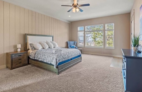 Beautiful, spacious home in upscale suburb near downtown Spokane with 3-car garage parking available. Boasting 6 bedrooms, 7 beds, 4 bathrooms, a kids' play area, two spacious living rooms, a well-stocked kitchen, and two decks with Evergreen views, you're sure to find comfort and convenience in this home. Convenience and comfort included, there are also parks within walking distance, a grocery store, local drive-thru coffee stand, and Chaps Coffee & Restaurant within a short drive or walk.