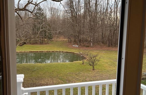 Beautifully furnished with upscale amenities. One mile from Oswego State U Adjacent to Rice Creak Field Station hiking trails. Large Deck perfect for sky viewing. View of pond and Rice creek. A half mile from Beautiful Lake Ontario.