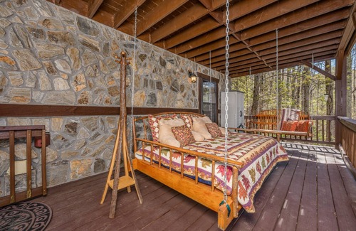 The ultimate mountain cabin, this upscale Banner Elk retreat boasts two ensuite bedrooms with fireplaces, double decks, and professionally decorated living quarters! Sure to be one of your favorite spots to hang out, the decks are surrounded by serene river sounds and one boasts a large swinging bed. A gas grill and firepit are also available for your enjoyment outside.