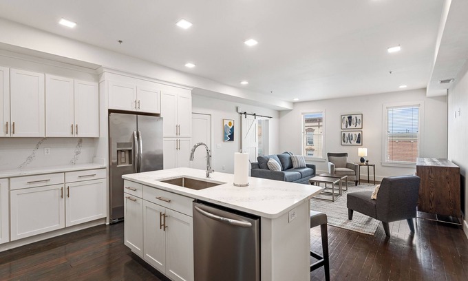 This professionally designed 1 bedroom apartment in downtown Charles Town is in the heart of downtown- walking distance to cafes, restaurants, and landmarks, and also close to all there is to do in the Historic Harpers Ferry, Virginia Wine Country, and Shenandoah River rafting. You will have exclusive access to this 3rd level walk-up with hardwood floors, a kitchen with a large quartz-top island open to the family room with a pull-out couch and TV (with Roku). Also, a small dedicated work area. This is a fully stocked apartment- all you bring is your suitcase!