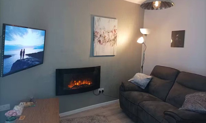 The apartment is warm & cosy with modern furnishings, smart TV, wifi & electric heating/water; a double bedroom & living room with open plan kitchen.