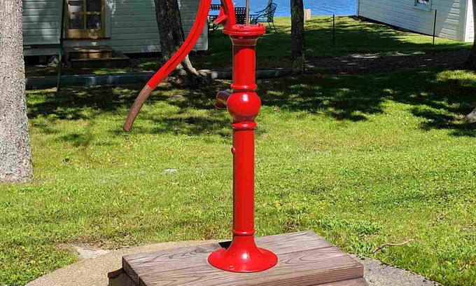 5 beds. twin beds are located on the front porch facing the water. Wake up to loons calls! Two twins beds located upstairs and a full bed as well. Two eating areas inside with a full bathroom and ample kitchen.