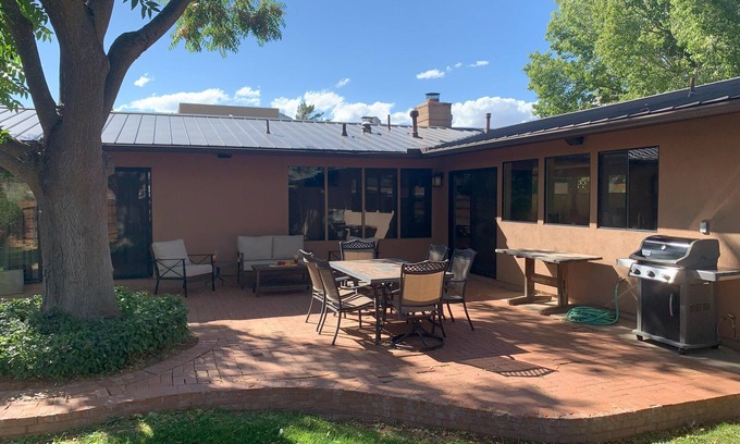 This comfortable uptown Sedona home offers fabulous views from inside and out! Quietude's private outdoor space features a patio with dining area and gas barbecue grill, a six-person hot tub, and a large enclosed grassy yard, all with superior views.