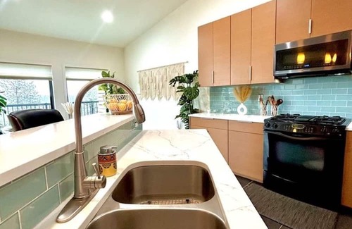 Located in the heart of Spokane close to everything. With its inside/outside and open space features, this house in the pines will offer you tranquility and action! This property gives great comfort and ease from the inside out. All bedrooms include a TV with streaming options and with the view you will find it very soothing and relaxing. On top of that you will be only 5min away from all the conveniences and 20min from the airport.