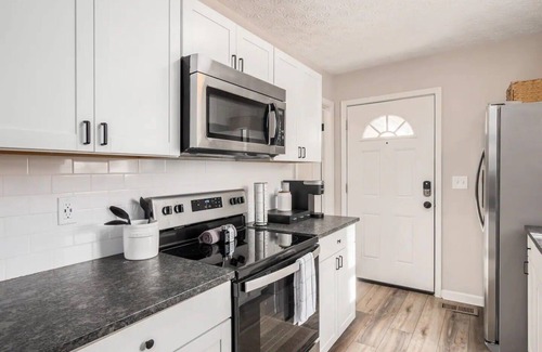 Welcome to your perfect base to explore downtown. This spacious Columbus home is not just a place to stay but a great hang-out spot for your group. With a relaxing hot tub, cozy fire pit, and gym featuring a Peloton bike, this home offers top-notch amenities and plenty of gathering spaces. Located in the Franklinton area, you're just a stone's throw away from all the best of downtown. Book your stay now and experience comfort and convenience.