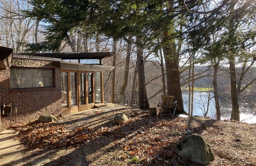 Usonian Frank Lloyd Wright Inspired River House on the Thornapple River | Ski Chalet in Alto