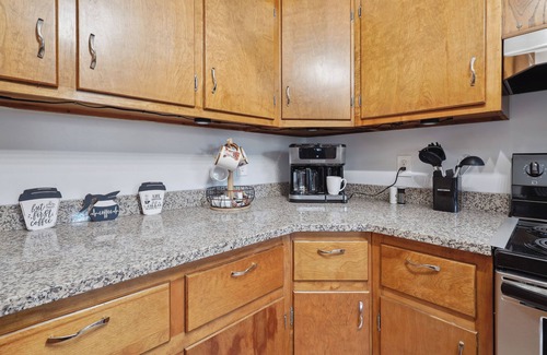 - Stainless steel appliances, cooking basics, dishware/flatware