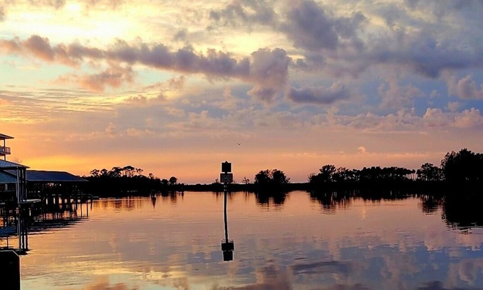 has a sleeper sofa. Big deck under the house for your private party or fish fry. Build a campfire by the water and enjoy your privacy. The town of Suwannee offers fishing in the Gulf of Mexico or the Suwannee River.