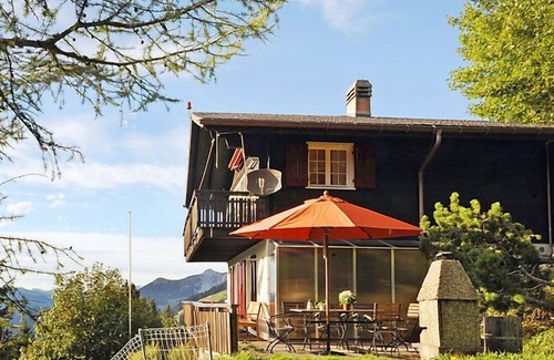 "Chalet Bühlweidli", 4-room chalet 100 m2 on 2 levels. Rustic and cosy furnishings: open living/dining room with open-hearth fireplace, satellite TV, flat screen and radio. Exit to the garden, to the balcony. 1 room with 1 x 2 bunk beds (90 cm, length 200 cm). Open kitchen (oven, dishwasher, 4 ceramic glass hob hotplates, toaster, kettle, freezer, grill, electric coffee machine, Capsules for coffee machine (Nespresso) extra, fondue Set (cheese)) with dining table. On the lower ground floor: 1 room with 1 double bed and shower/WC. Exit to the terrace. 1 room with 1 double bed. Shower/WC. Electric heating, oil heating. Balcony, south facing position, large patio. Terrace furniture, barbecue, box-room. Marvellous panoramic view of the mountains, the valley and the countryside. Facilities: washing machine, dryer, baby cot (extra), hair dryer. Internet (WiFi, free). 1 pet/ dog allowed.