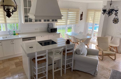 Vacation home De'Lale Villa with great views and pool in Izmir Reisdere has 4 Bedrooms , 4 Bathrooms, and max occupancy of 8 people. The minimum rental for this property is 1 nights, but this can change depending on the season you plan on staying. Previous guests have given good rated it, and VRBO labeled it a top-rated House because of the excellent services rendered by the owner or manager of this House, and has consistently provided great experiences for their guests. Most families or guests that use it recommend it to their friends and some of them are repeat guests. House has a friendly neighborhood, and the Ildır Koyu has interesting places to visit. If you want to learn more about the House in Ildır Koyu, such as places to visit and things to do nearby, you can check below to learn more.