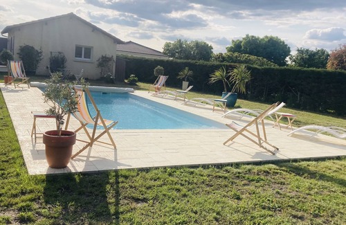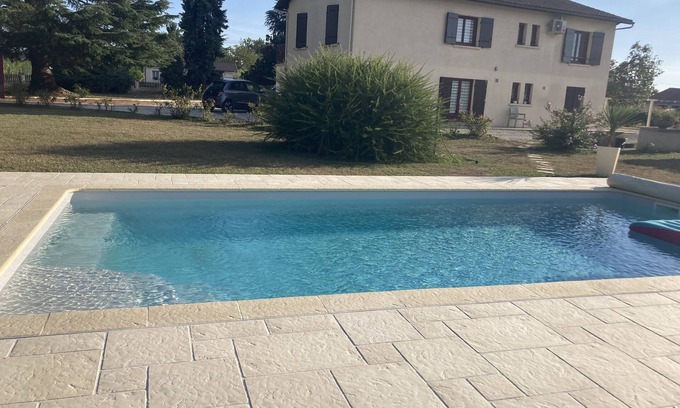 Vacation home for 10 people with swimming pool: 5 bedrooms (double beds), 4 bathrooms, 4wc | House in Prigonrieux