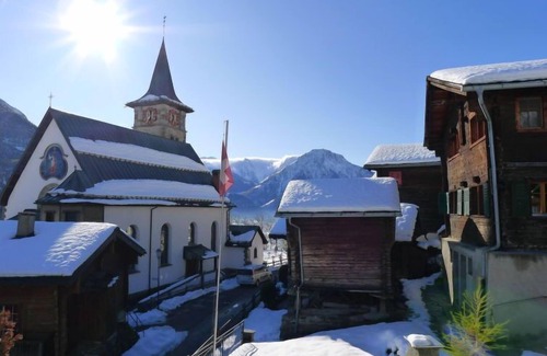 Ried-Mörel 10 km from Brig: Cosy, rustic single-family house "Godo", 1'150 m a.s.l., 3 storeys. In the centre, in a quiet, sunny position on a slope, 500 m from the skiing area. Private: property, lawn for sunbathing 30 m2. (sandbox). In the house: storage room for bicycles, storage room for skis, central heating system, washing machine, drying room. Narrow motor access to the house (mountain road). In Winter: please take snow chains, 4x4 car recommended in winter. Parking (for 2 cars) at the house, single garage, public parking 30 m. Grocery, restaurant 500 m, bus stop "Ried-Mörel" 500 m. Ski lift 1 km, gondola lift 500 m, skisport facilities 1 km, slopes 1 km, ski school 1 km, sled run 1 km, cross country ski track 1 km, children's playground 500 m. Nearby attractions: UNESCO Welterbe Aletsch 1 km. Well-known ski regions can easily be reached: Aletsch Arena Riederalp 1 km. with a lot of snow in winter access to the garage and outdoor parking is not guaranteed. Chalet is located 500m away from middle station of the Mörel – Riederalp gondola lift.