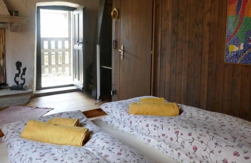 "Rustico Tecc 'dnaas", 2-room house 50 m2 on 2 levels, south facing position. Object suitable for 2 adults. Partly with sloping ceilings, rustic and wooden furniture furnishings: open living/dining room with open-hearth fireplace, dining nook and cable TV. Exit to the patio. Kitchen (oven, 4 ceramic glass hob hotplates, toaster, kettle, microwave, electric coffee machine, Capsules for coffee machine (Nespresso) extra, raclette grill, fondue Set (cheese)). Shower/WC. Electric heating, wood heating. Upper floor: 1 room with 1 double bed (1 x 160 cm, length 200 cm). Exit to the balcony. Small patio partly roofed. Deck chairs (2). View of the mountains and the countryside. Facilities: children's high chair, baby cot for up to 2 year olds (extra), hair dryer. Internet (WiFi, free). Please note: non-smoking house. Maximum 1 pet/ dog allowed. Fire extinguisher. NL-00003750